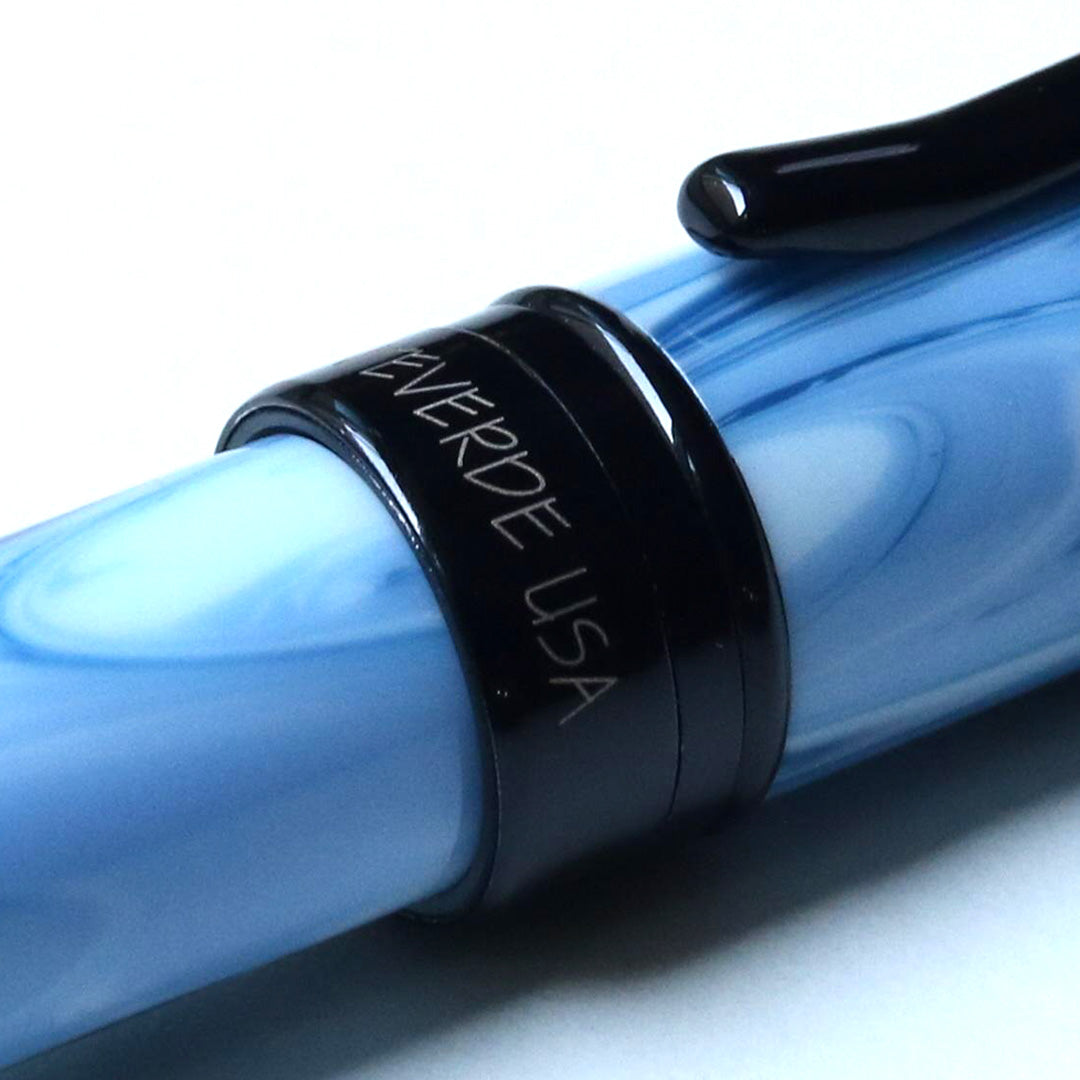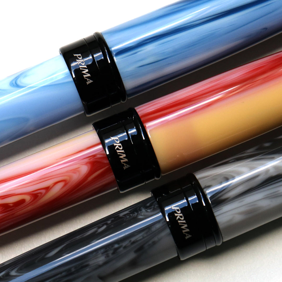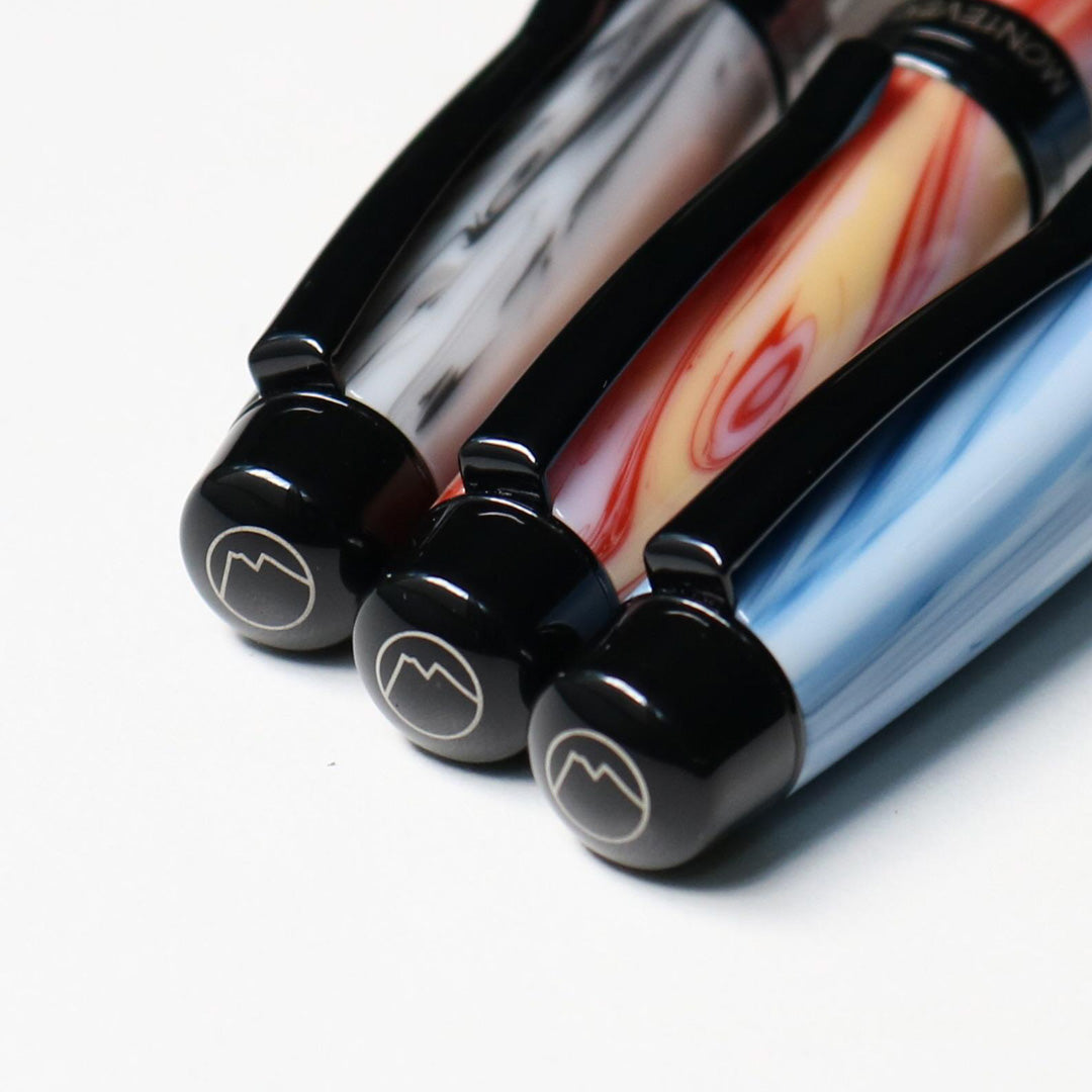 高品質アクリルレジンを手作業で削り出して作られるボディには、1本ずつ異なる模様が現れ、どれをとっても全く同じものは存在しません。緩やかなカーブを描くやや太めの軸は、人間工学に基づいたデザインです。